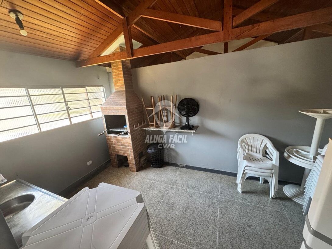Apartamento com 3 quartos, sala, cozinha, banheiro, área de serviço com churrasqueira, playground, 1 vaga de garagem descoberta e portaria remota.